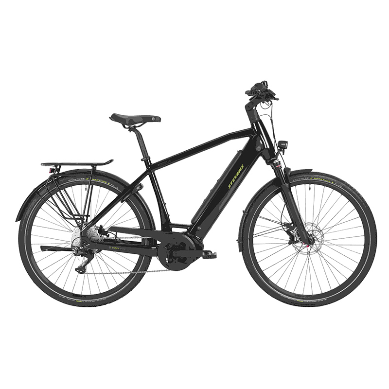 Stevens E-Triton 7.6.1 e-trekking kerékpár. Elektromos rásegítéssel felszerelt túrakerékpár, amelyet hosszabb távok megtételére, aszfaltozott és könnyebb terepviszonyok (murva, erdei út) közötti kényelmes közlekedésre terveztek. Sárvédővel, csomagtartóval, lámpával felszerelt, kényelmes üléspozíciót biztosít.