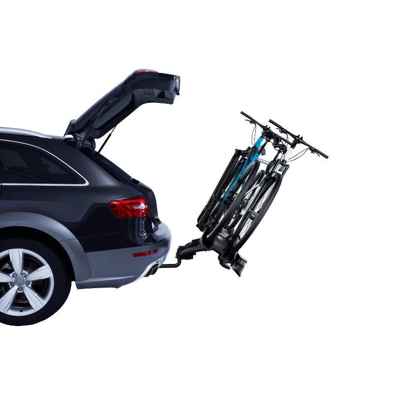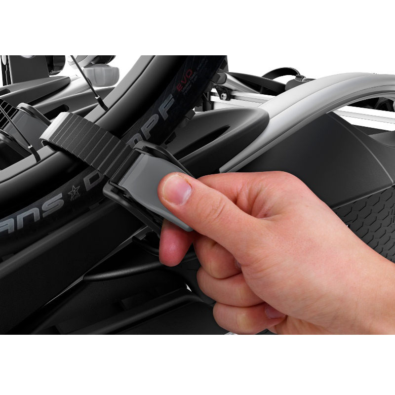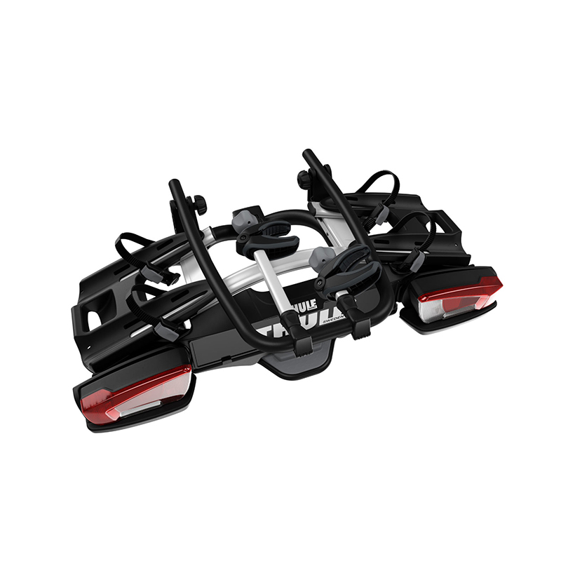 Thule VeloCompact 924 vonóhorogra szerelhető, könnyen összecsukható és tárolható kompakt kerékpártartó. Tökéletes választás a mindennapi használatra, de hosszabb távon is kiválóan használható. 2db kerékpár szállítására alkalmas, amit egyszerűen de biztonságosan lehet rögzíteni a kerékpártartóra.