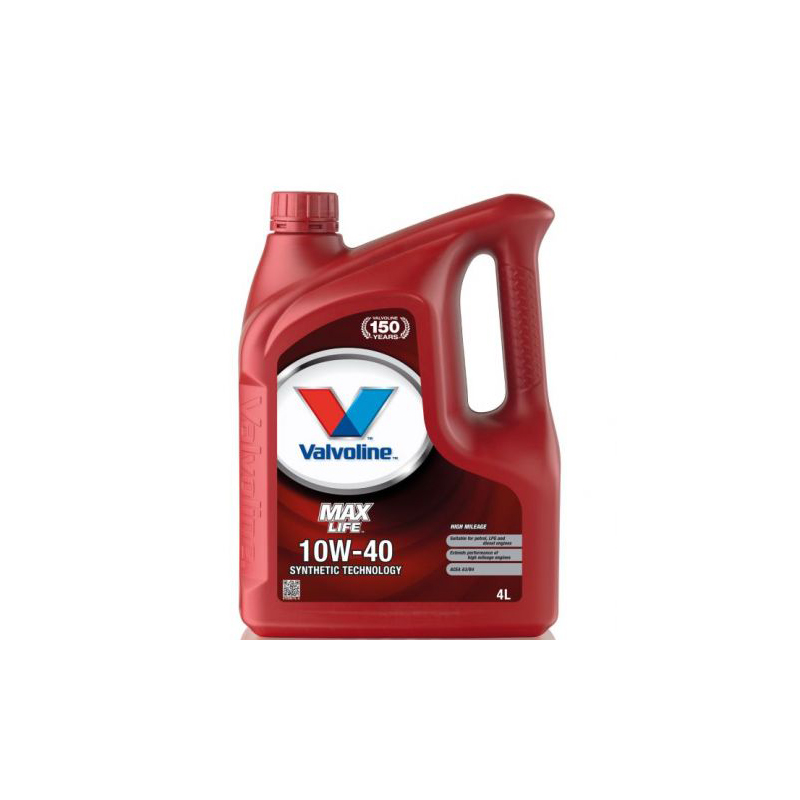 A Valvoline kenőanyagok nemzetközi ipari szabványokat meghaladó minőségi jellemzői garantálják a kifogástalan teljesítményt és a motorok minden kétséget kizáró védelmét. A Valvoline MaxLife 10W-40 Motor Oil egy új generációs, fél-szintetikus motorolaj, amely kifejezetten a sokat futott személygépjárművek számára lett kifejlesztve. Az öregebb motorok teljesítménye sokszor csökken, az olajfogyasztásuk pedig nő. A Valvoline MaxLife 10W-40 motorolaj korszerű adalékai segítenek lelassítani a kopási folyamatot, és maximalizálni a motor élettartalmát. Olyan személyautók és kisteherautók motorjai számára lett tervezve, melyek több mint 100 ezer km-t futottak. Valódi „Old Timer”-ekhez nem használható.